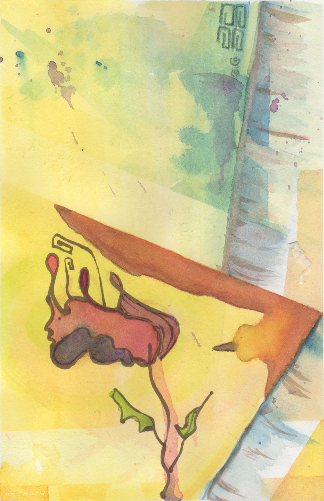In the meantime, I’ve sat at my table, losing hours while I paint. These final four pieces were begun in the past few weeks and may be the last I complete for awhile…besides not writing, I have taken little time for guitar play. But we’ll see. I do have two new washes on the board.